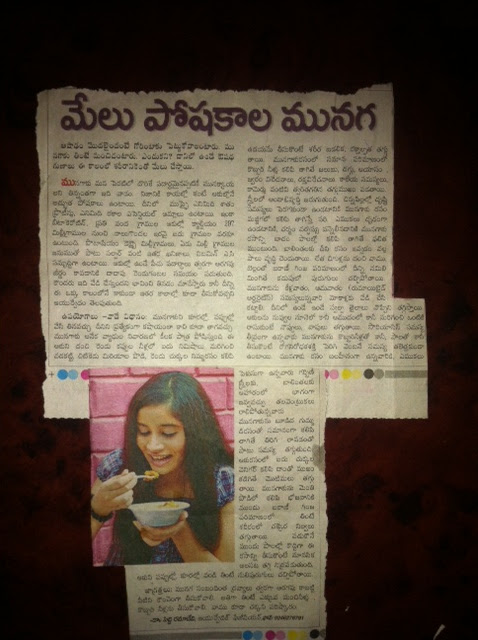 పెద్దవాళ్ళు చెప్పారంటే ,అందులో తప్పక ఏదో ఒక ఆరొగ్యసూత్రమ్  తప్పక ఉంటుందని నాఅభిప్రాయం . మంచిదేకదా!అని ఫాలో అయిపోవడమే . అబ్బే !అలా గుడ్డిగా ఫాలోఅవడం కుదరదూ అంటే, మునగాకు ఉపయోగాల్ని గూర్చి ,ఆయుర్వేద నిపుణులు చెప్పిన విషయాలకు, సంబంధించిన  ప్రచురణ జత చేస్తున్నాను, చూడండి .
