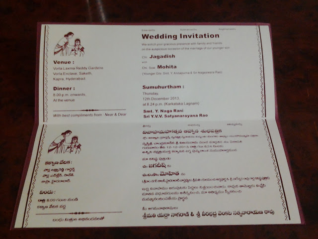 బ్లాగు మిత్రులందరికీ ,బ్లాగు ద్వారా ,మా అబ్బాయి వివాహ ఆహ్వాన పత్రిక .కాస్త ముందే పోస్టు చేస్తున్నాను .ఈరోజు కాస్త సమయం దొరికింది .తరువాత పనుల్లో పడిపోతే మరి కుదరదేమోని ముందే పిలస్తున్నానండీ!మా చుట్టుపక్కల మిత్రులు ఎవరైనా ఉంటే ,వివాహానికి వచ్చి వధూవరులను ఆశీర్వదిస్తే సంతోషం .దూరంగా ఉండేవాళ్ళు వచ్చినా నాకేమీ అభ్యంతరం లేదండోయ్!”రండి !రండి!రండి!దయచేయండీ!తమరి రాక మాకెంతో సంతోషం సుమండీ!