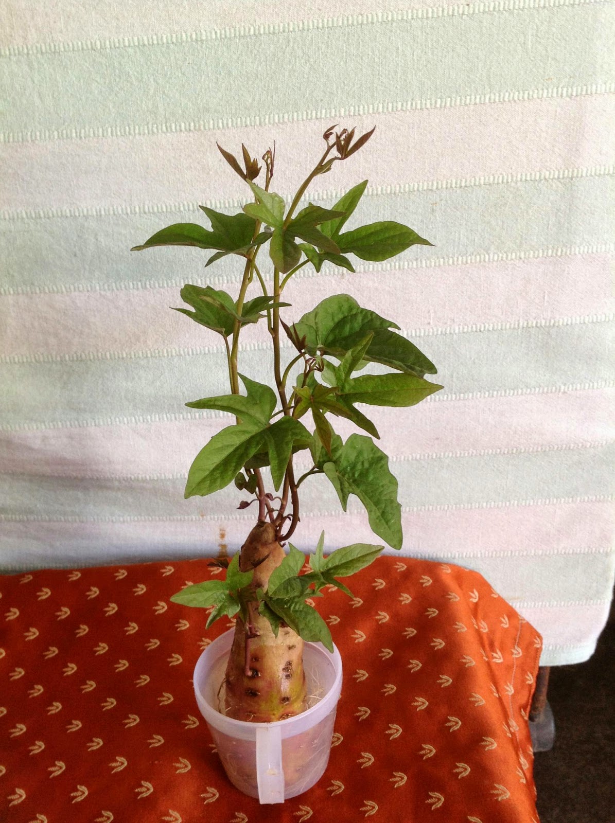 ఈసారి గ్రాండ్ సక్సెస్ కదండీ !అందుకే మీకూ చూపించి , నాలుగు కామెంట్లు కొట్టేద్దామని ఆశ.అన్నట్టు ఈ చెట్టు ?వయస్సు 23రోజులు.కప్పులో నీళ్ళు పోసి దుంప సగం ములిగేలా పెట్టానంతే!ఇంట్లోనే.రెండు రోజుల కోసారి నీళ్ళు మారుస్తున్నాను. పనిలో పని మా పెరట్లో కాసిన కాకరకాయలు కూడా చూసేయండి.