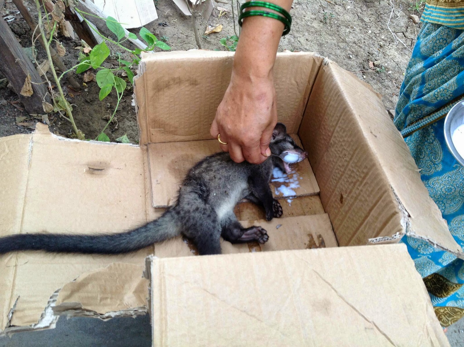ఈలోపు శ్రీ వారు వచ్చి , దాన్ని జాగ్రత్తగా అట్టపెట్టె లోకి లాగి , బైటకు తీసికొచ్చారు . పాపం ! మేం దాన్ని కదిపి బైటకు తెచ్చేసరికి అరవడం కూడా మానేసింది.దాన్ని చూడకుడానే ,వాసన పసికట్టి , మా కేండీ అరుపులు ,హడావుడీనూ! ఇక దాన్నేం చేయాలో అర్ధం కాలేదు . ముందుగా కాసిని నీళ్ళు పోద్దామని ,దాన్ని ,వాడకంలో లేని నీళ్ళ కుండీలో పెట్టాం,కేండీకి అందకుడా.తరువాత చెంచాతో నీళ్ళు పోసాను.త్రాగలేదు,ప్రక్కనుండి వచ్చేసాయి.పాలు పోస్తే ,చక్కగా చప్పరిస్తూ తాగేసింది. కథ ఇంకా చాలా ఉందండోయ్! మిగతా మరోసారి .